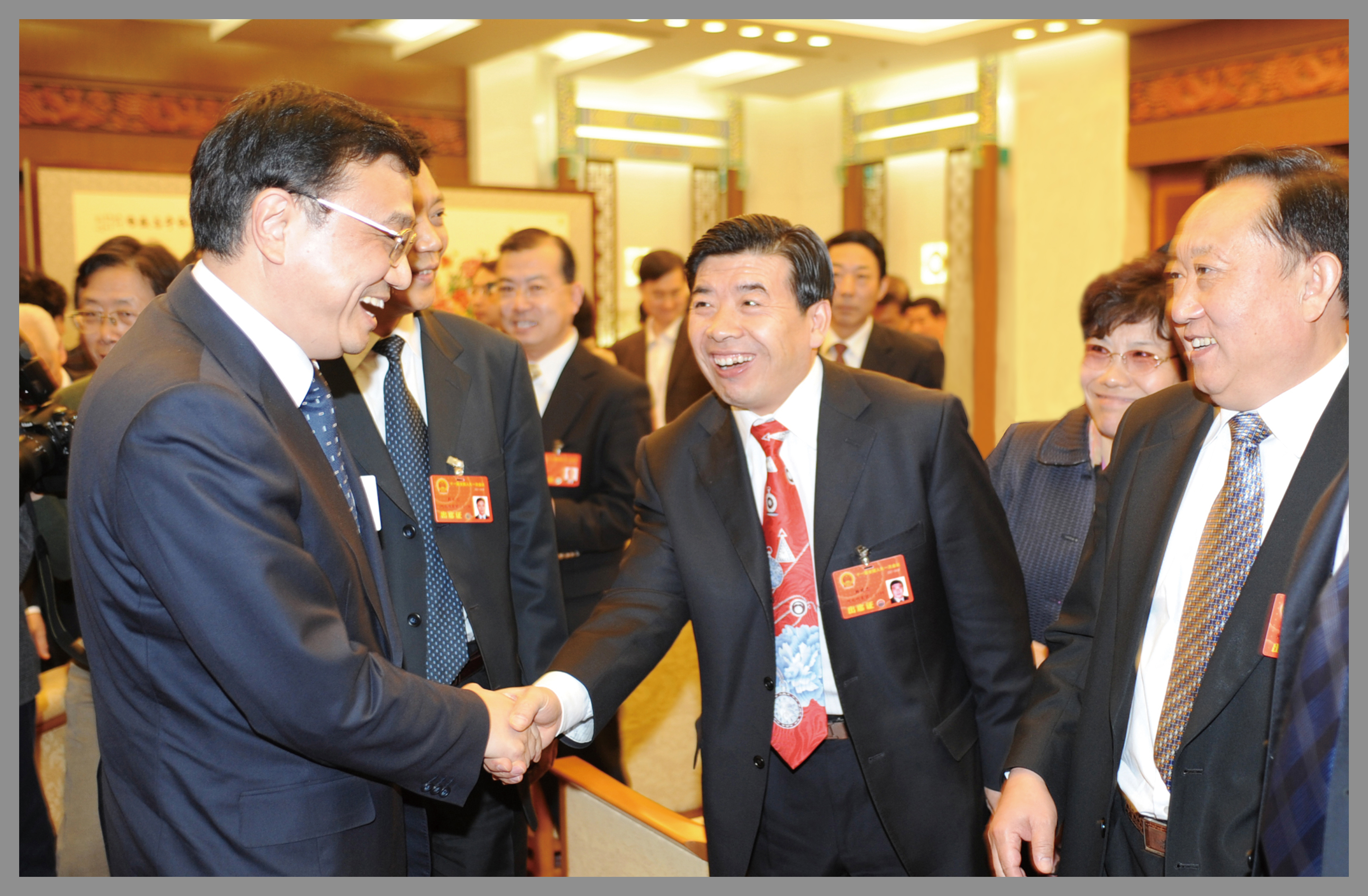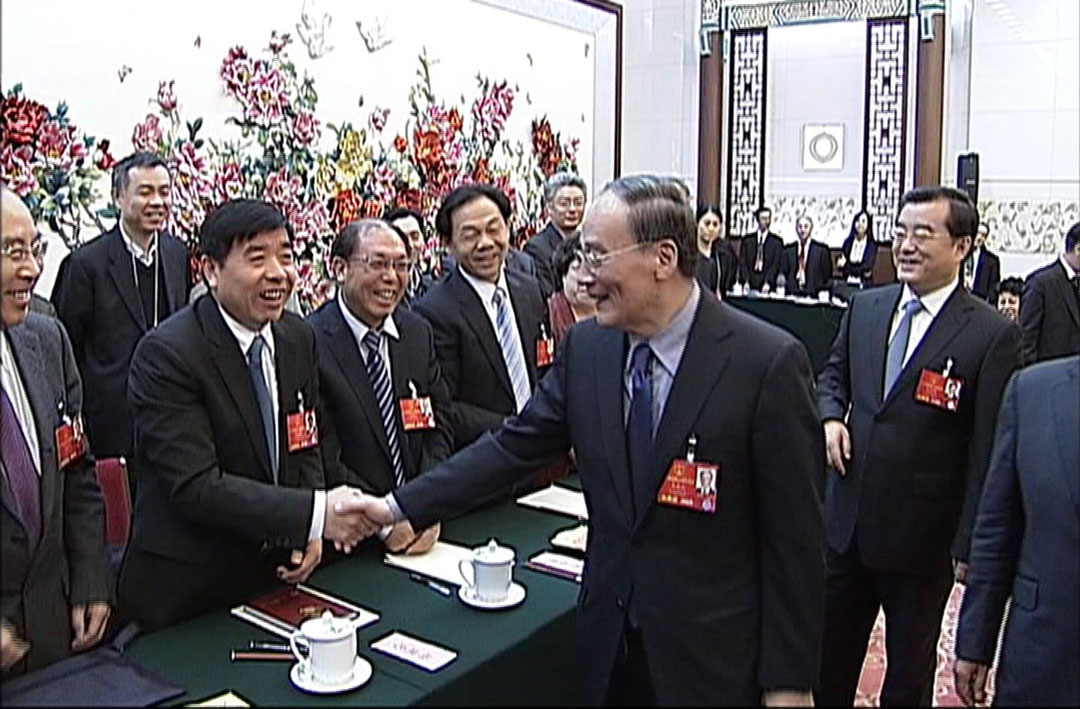 時(shí)任中央政治局常委、中央紀(jì)委書記王岐山與楊建忠董事長(zhǎng)親切握手